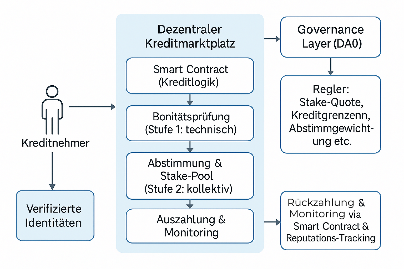 - Akteursrollen (Kreditnehmer, Stakeholder, DAO-Mitglieder)